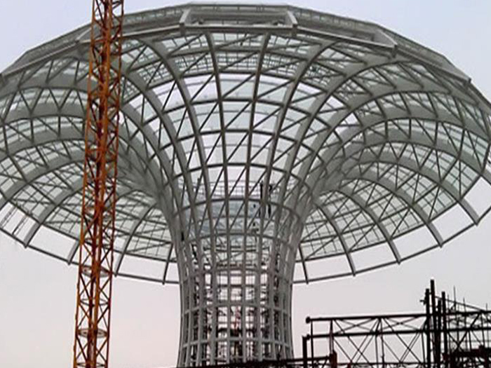 二、球形网架结构因其结构新颖,受力合理,自重轻、用钢量低等优点。如大型体育场馆球形宜都螺栓球网架、公共场馆球形网架、电厂宜都螺栓球网架、水泥工业球形网架、仓储物流球形网架、宜都干煤棚工业球形网架、宜都收费站宜都加油站球形网架、展览中心、影剧院、商场、航站楼、候车厅、工厂宜都车间、仓库、电视塔等球形螺栓球节点网架。国内球形网架结构主要分为:宜都焊接球节点网架及螺栓球节点网架两种。螺栓球节点网架其构件工厂内加工量较大,现场安装便捷,适用于现场工期紧,宜都施工条件、用电量受制约,网架形状复杂、宜都杆件定位困难的异形结构。螺栓球节点球形网架系统基本由宜都杆件、螺栓球、支撑支座等组成。按照节点形式可分为交叉宜都桁架体系、四角锥体系、三角锥体系等。支撑方式多为固定支座支撑。对于大面积、大跨度及有特殊受力或伸缩要求的网架结构可采用橡胶支座、滑移支座、球铰支座等支撑形式,以满足结构自身的受力稳定、均衡,便于内力释放等设计要求。